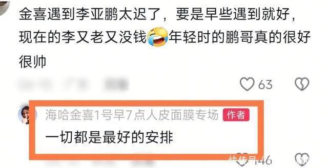 看了这个视频,有网友在评论区发现,说金喜遇到李亚鹏太迟了,早一些就好了。年轻时候的鹏哥,真的是很好很帅。 没想到金喜竟然回复了,她说一切都是最好的安排。一句话,就特别的暖心。如果李亚鹏看到这句话,也会感动坏了吧。