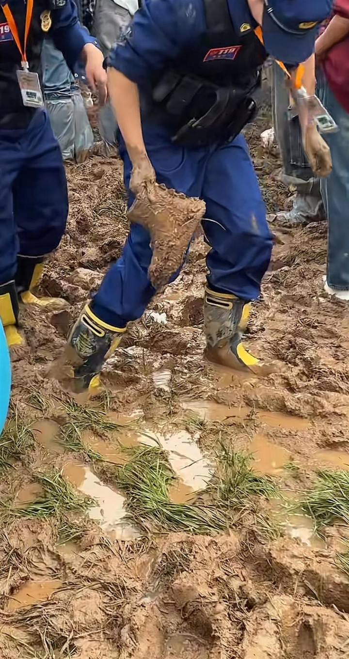 多名网友发布的视频显示,2日的音乐节现场已经秒变“插秧现场”。许多人陷入泥巴当中,不得不弯腰拔腿前行。有的歌迷有先见之明,专门穿了雨靴,但也难逃被泥巴困住的窘境。现场工作人员不断帮助大家拔出陷在泥里的鞋子。